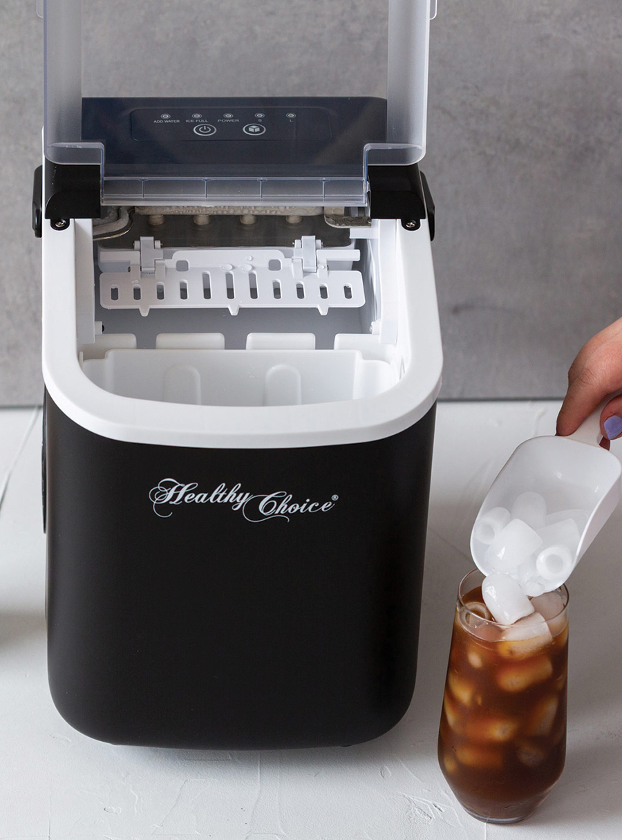 Forget those last-minute dashes to the servo for ice – this clever Ice Maker has you covered, delivering your first batch in only 8 minutes. It produces up to 10–12 kg in 24 hours, making 9 bullet-shaped cubes per cycle, perfect for drinks, parties, or a cool refresh anytime. The 1.1-litre water tank keeps the ice flowing, while the transparent viewing window lets you check progress easily. LED indicators alert you when the ice basket is full, water is low, or it’s time for a clean, making operation simple and stress-free.
