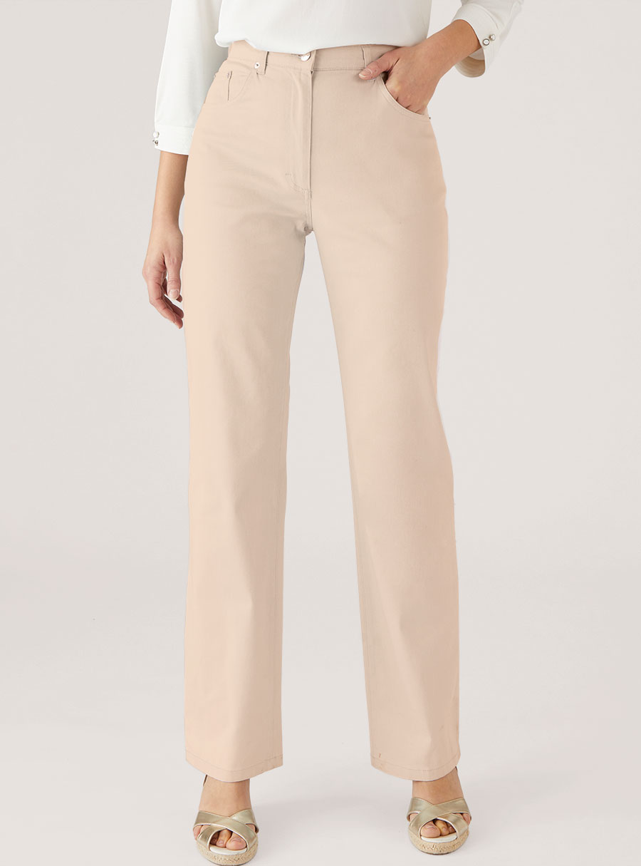 Classic 5 pocket stretch cotton trouser with back elastic for a perfect fit. Pair with your favourite tee or sweater for an effortless winter outfit. 97% Cotton, 3% Elastane.