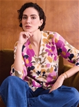 Soft ribbed knit with floral print, V-neck and dropped armholes. Buttoned with silver-rimmed enamel buttons. 39% Acrylic, 33% Polyester, 28% Polyamide.