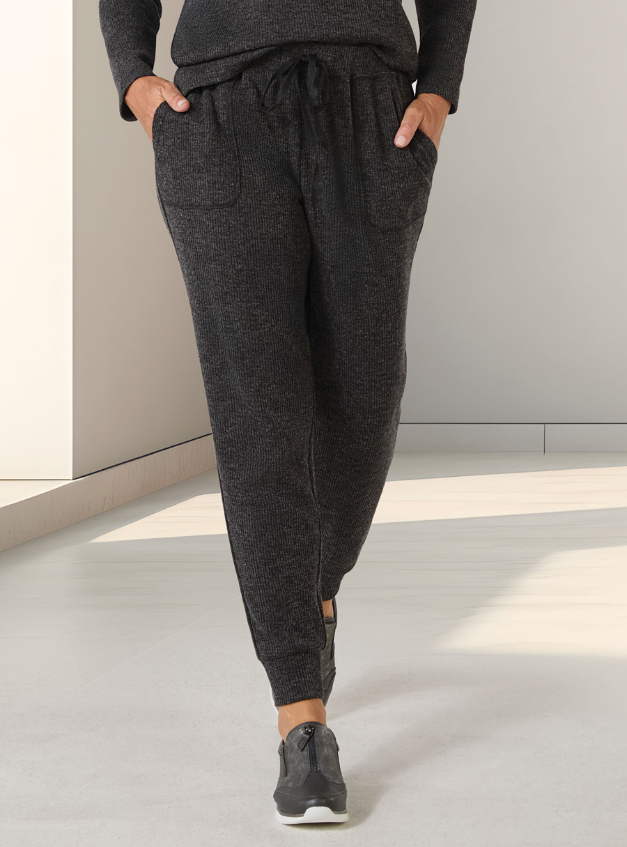 Drawstring elastic waist, easy pullon design, patch pockets cuffed hem for a relaxed fit with effortless, elevated everyday lounging.