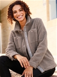 Fluffy, soft teddy fleece jacket for the season! With turn-down collar and press stud placket. 2 breast pockets with press studs and 2 in seam pockets. Long sleeves with cuffs and press stud. Rounded hem at the front and back.