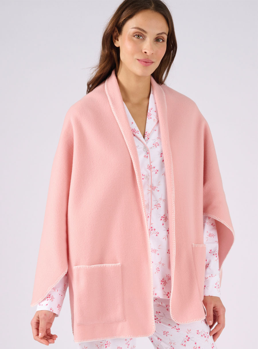 Thermolactyl fleece cape with a cosy shawl cut, stylish contrast stitching, 2 pockets and all-around warmth and comfort. Polyester.