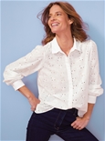 A soft and light blouse with a stylish broderie design. This top is perfect to dress up or down depending on your occasion. A shirt collar, front button placket and long sleeves with classic button cuffs. 100% Cotton.