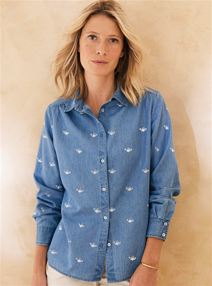 An effortlessly chic essential – it’s both lightweight and comfortable. Features floral embroidery, button-down front and long sleeves with buttoned cuffs. 62% Cotton, 38% Lyocell.