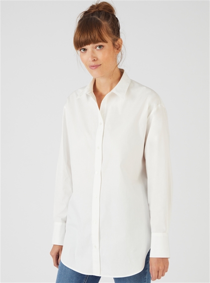 Pure cotton longline shirt with scoop front and back hem. Comes in a range of soft feminine colours. 100% Cotton.