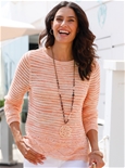 Pure cotton in summer quality: this sweater with an airy, slightly open ajour pattern mix and multi-coloured melange yarn is an instant hit. With a boat neckline and ribbed cuffs and hem. 100% Cotton.