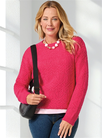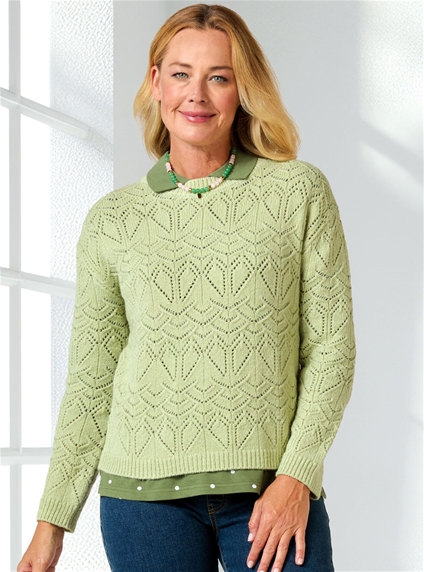 Lightweight pointelle knit jumper with a soft hand feel and breathable structure, perfect for layering.